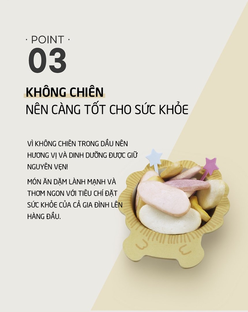 - Sản phẩm không chiên dầu, lành mạnh cho sức khỏe.