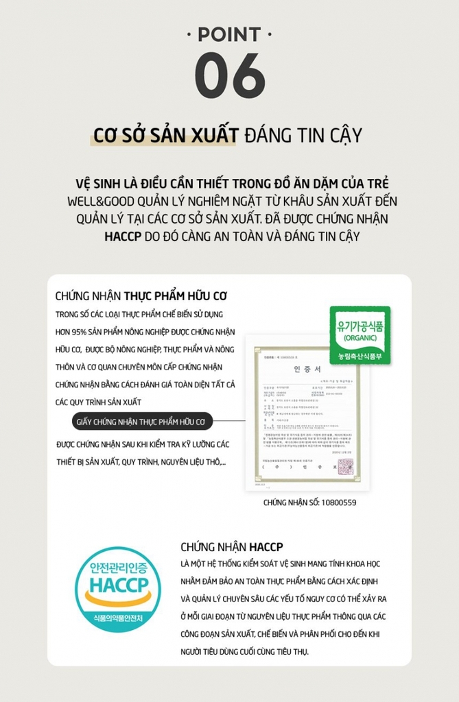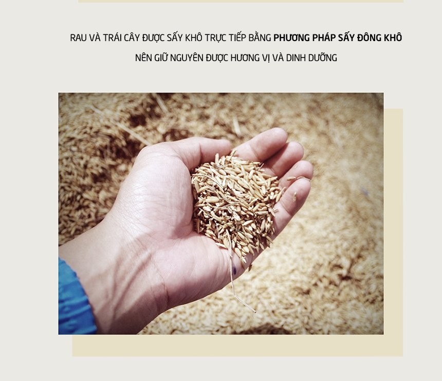- Gạo trắng hữu cơ, đường hữu cơ, vitamin, men vi sinh.