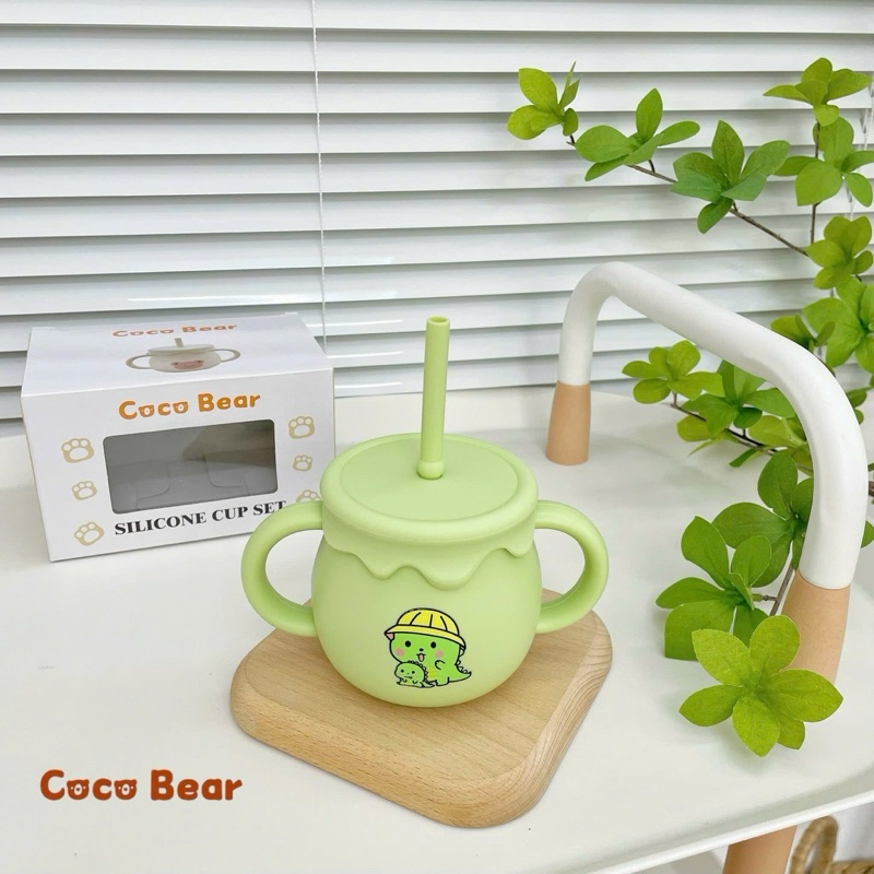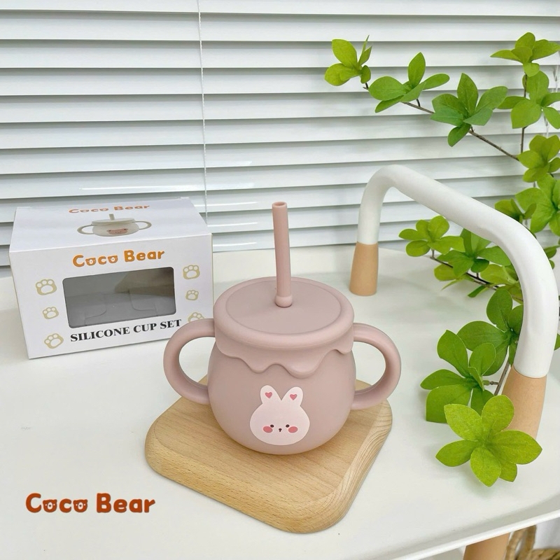 Tên sản phẩm: Cốc silicone có nắp kèm ống hút Coco Bear