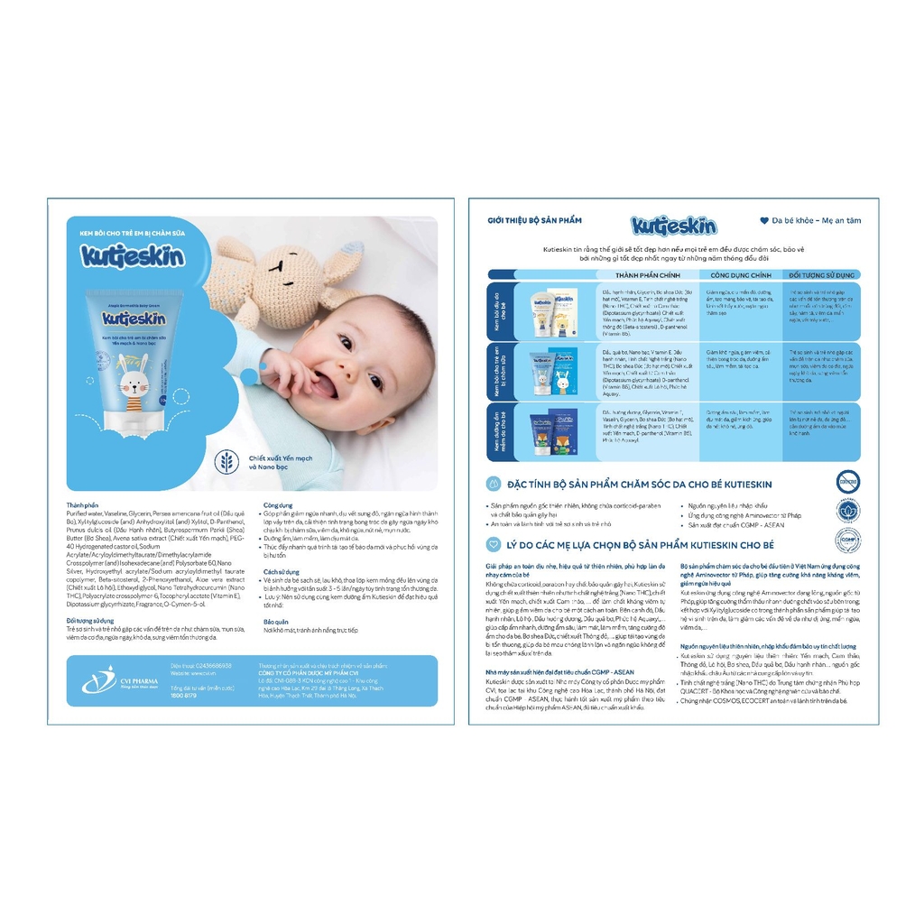 Đối tượng sử dụng: Dành cho những trường hợp em bé bị chàm sữa (lác sữa), viêm da, khô ngứa, bong tróc da. Đây là giải pháp an toàn và hiệu quả nhanh nhờ chiết xuất từ những nguyên liệu kháng viêm tự nhiên, nổi trội là Nano Bạc, chiết xuất Yến Mạch, tinh nghệ trắng Nano THC và Bơ Shea Đức