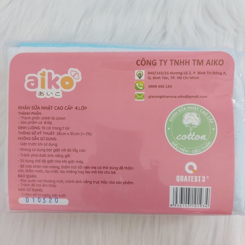 Set 10 khăn sữa xô 4 lớp Aiko lớn (28x35cm)