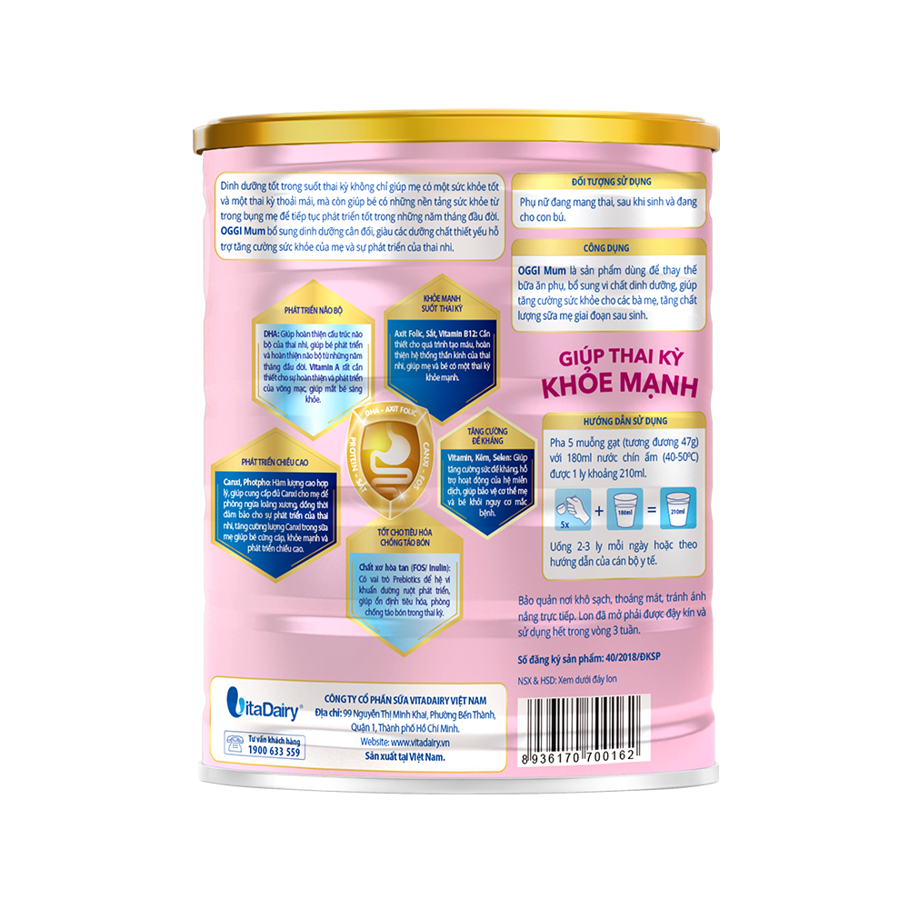 - Dinh dưỡng tốt trong suốt thai kỳ không chỉ giúp mẹ có một sức khỏe tốt và một thai kỳ thoải mái, mà còn giúp bé có những nền tảng sức khỏe từ trong bụng mẹ để tiếp tục phát triển tốt trong những năm tháng đầu đời. OGGI mum bổ sung dinh dưỡng cân đối, giàu các dưỡng chất thiết yếu hỗ trợ duy trì và tăng cường sức khỏe của mẹ và sự phát triển của thai nhi.