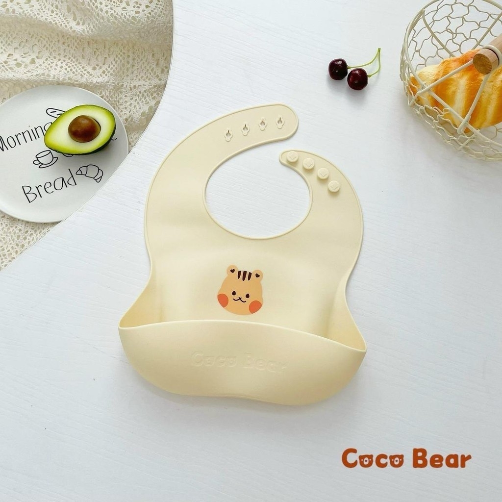 Yếm ăn dặm silicone có máng hứng Coco Bear